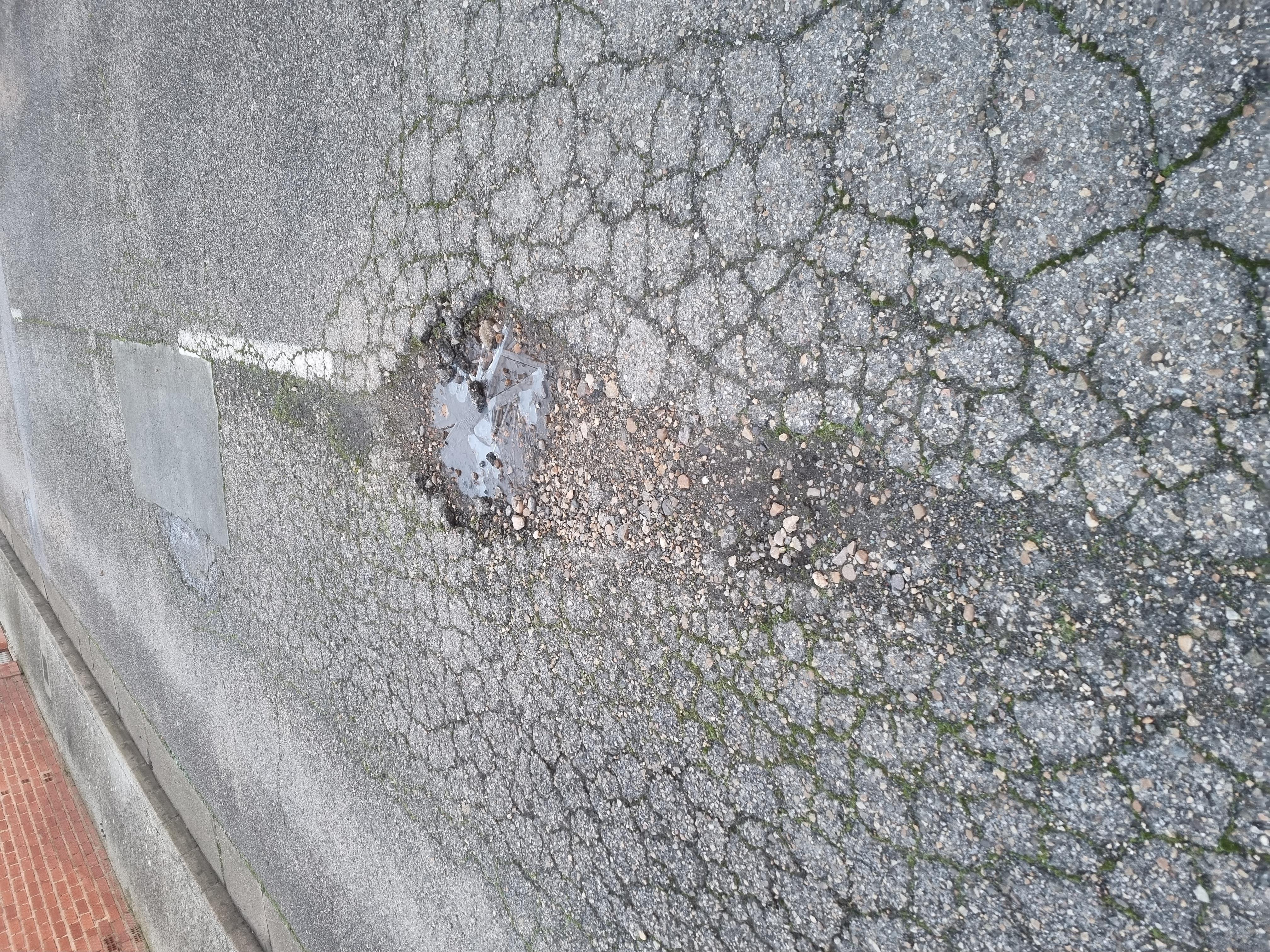 Recientemente han asfaltado en la calle el reguilar y en la foto que les adjunto se hace un charco de agua por la falta de nivelacion del asfalto, se ha caido un hombre el otro dia que llovió, después han hecho con una radial un pequeño surco para la evacuación del agua que no es solución, la solución esta en un buen nivel de asfaltado para evitar la acumulación de agua